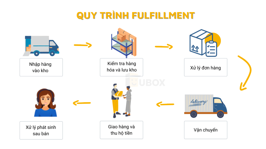 Fulfillment là quá trình từ khi hàng hóa được nhập vào kho cho đến khi người mua hàng nhận được sản phẩm. Quy trình này bao gồm: